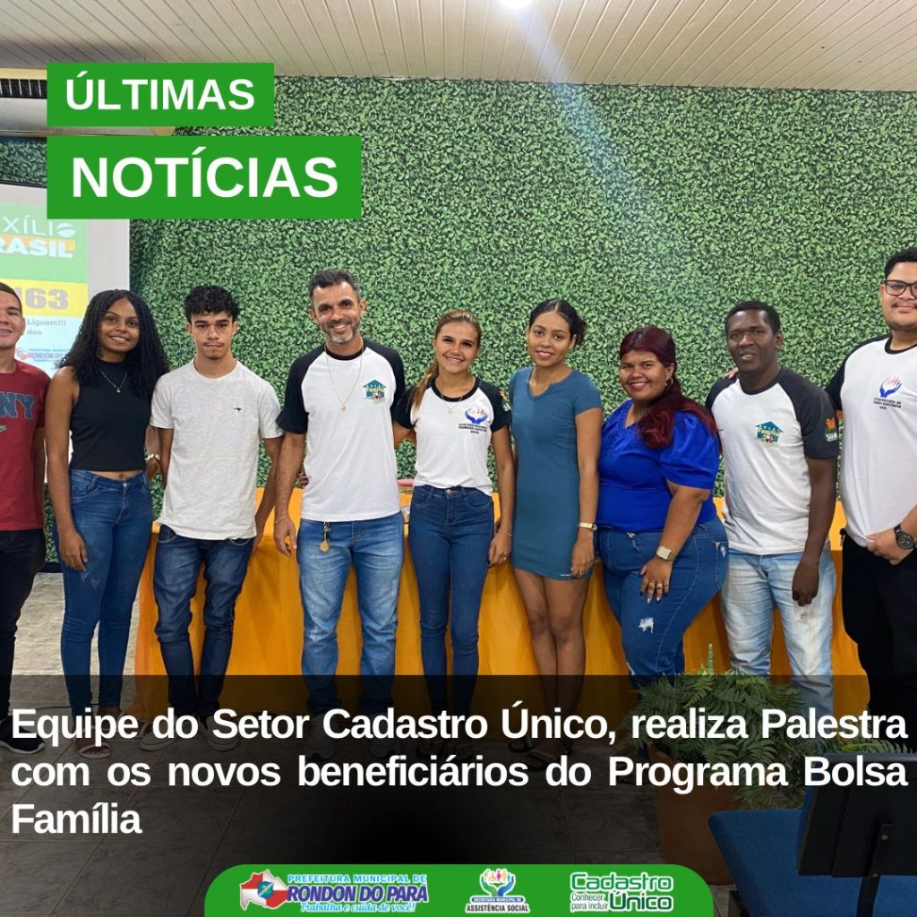 A Secretaria Municipal de Promoção e Assistência Social, por meio do Setor Cadastro Único de Rondon do Pará, realizou no dia 25 de agosto de 2023, no Centro Profissionalizante Edivaldo Martins, uma palestra destinada aos novos beneficiários do Programa Bolsa Família do Governo Federal. O objetivo da palestra foi esclarecer dúvidas e informar a população sobre o funcionamento e os critérios do Cadastro Único, bem como seus benefícios. O coordenador do Setor, Adryano Rodrigues, e sua equipe agradeceram à Prefeita Municipal Adriana Andrade, juntamente com a Secretária de Assistência Social, Eldicia Leal, pelo apoio e dedicação contínuos que beneficiam e auxiliam os usuários.