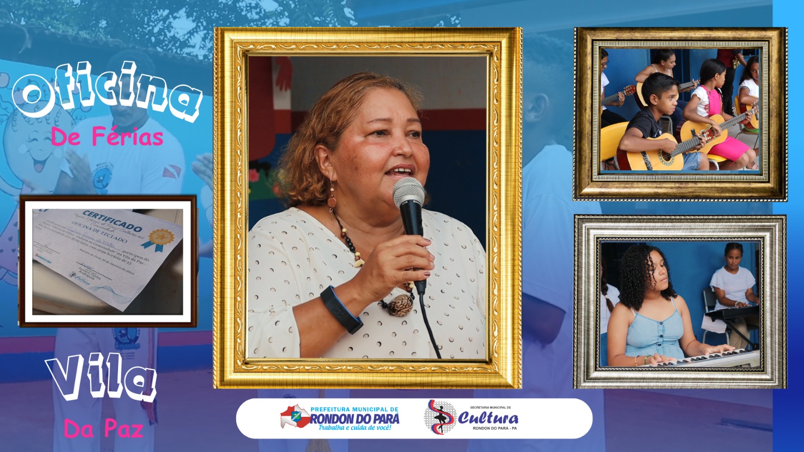 Entre os dias 22 e 26 de janeiro a Secretaria de Cultura promoveu o Projeto Oficina de Férias nas Comunidades. O projeto contemplou os moradores da Vila da Paz com aulas de música e outras atividades desenvolvidas na comunidade.